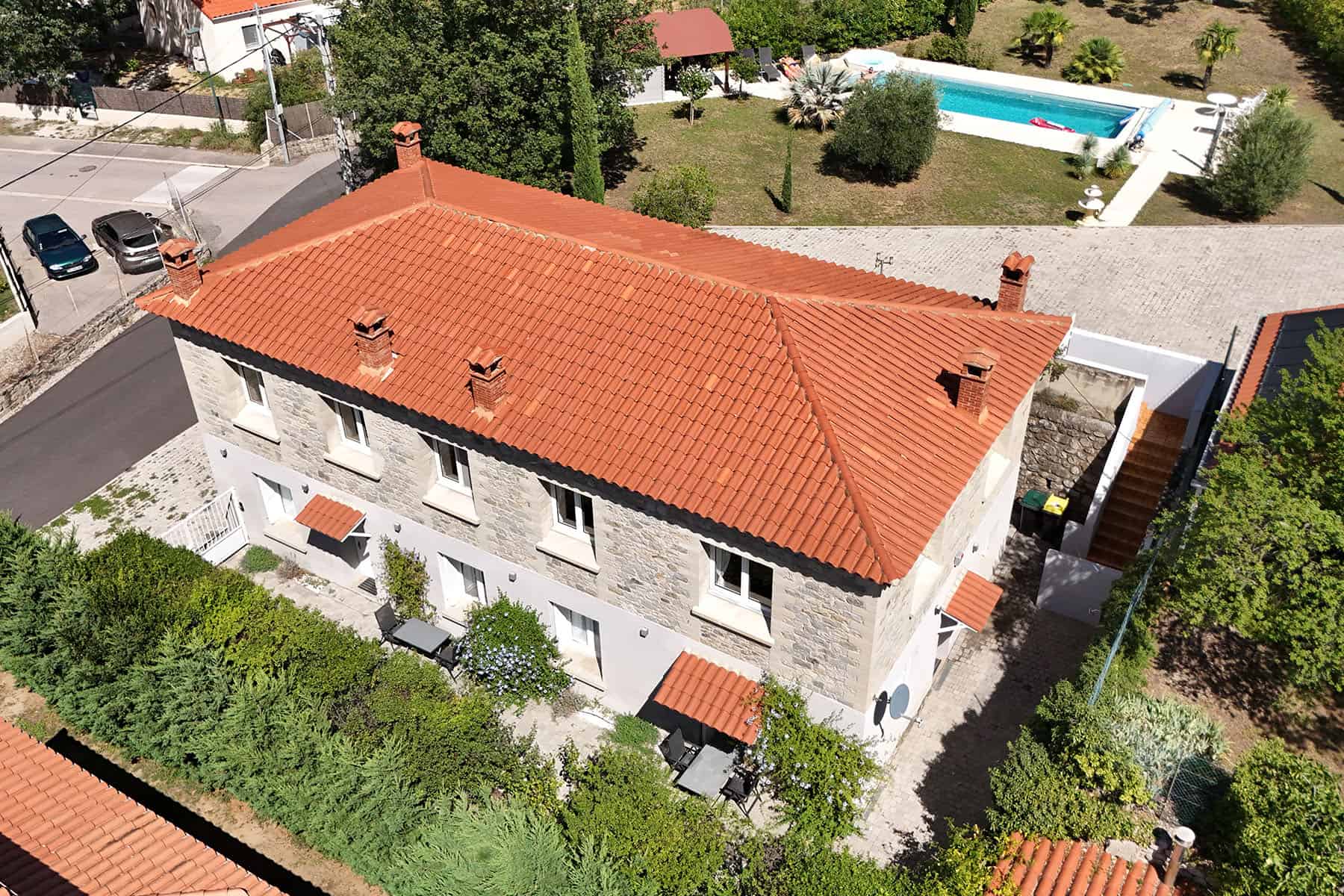 Nous avons acheté l’ancienne école Claire Fontaine pour l’ancienneté du bâtiment et les murs épais qui gardent la maison fraîche en été, et bien sûr parce qu’elle est située dans une belle région entre la mer et la montagne.
