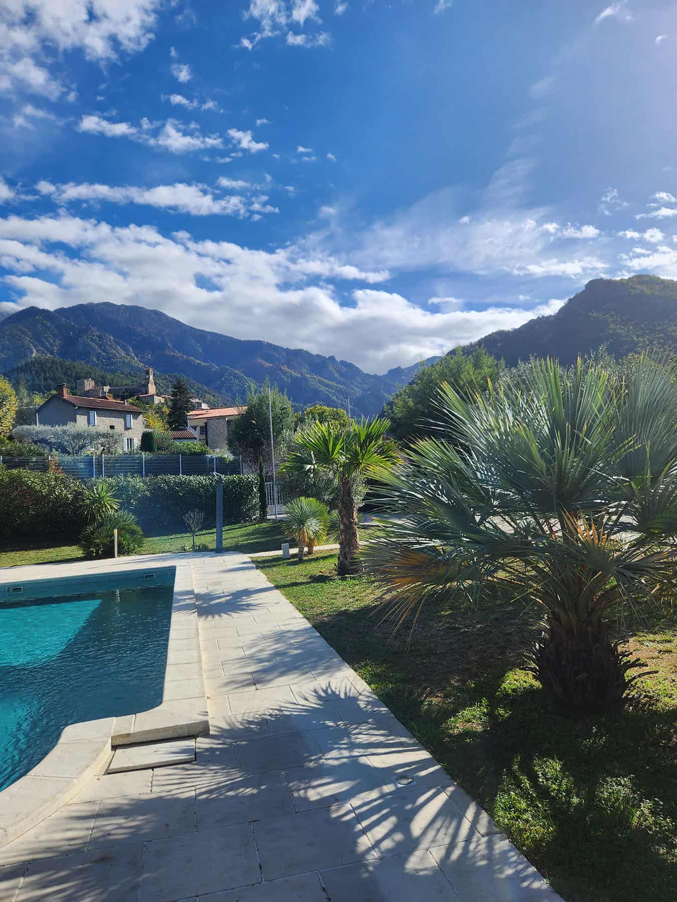 La maison est située au cœur du parc naturel régional, à 680m d’altitude, au pied du Canigou (2785m). Il est situé à la périphérie de Vernet-les-bains et offre une vue panoramique imprenable sur les montagnes. Il se trouve à quelques pas du village, connu entre autres pour ses thermes, spécialisés dans les rhumatismes et les poumons grâce à son air très pur et son humidité optimale. Pour cela, le label de qualité vert a été attribué.